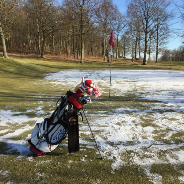 Här är ekipaget ute på vinterspel för några år sedan, men bag och innehåll är fortfarande desamma. För, det finns ingen rimlig anledning att byta ut ett vinnande koncept. Duken på bagen, precis som samtliga klubbor och bag kommer från Cervingolf i Enköping.